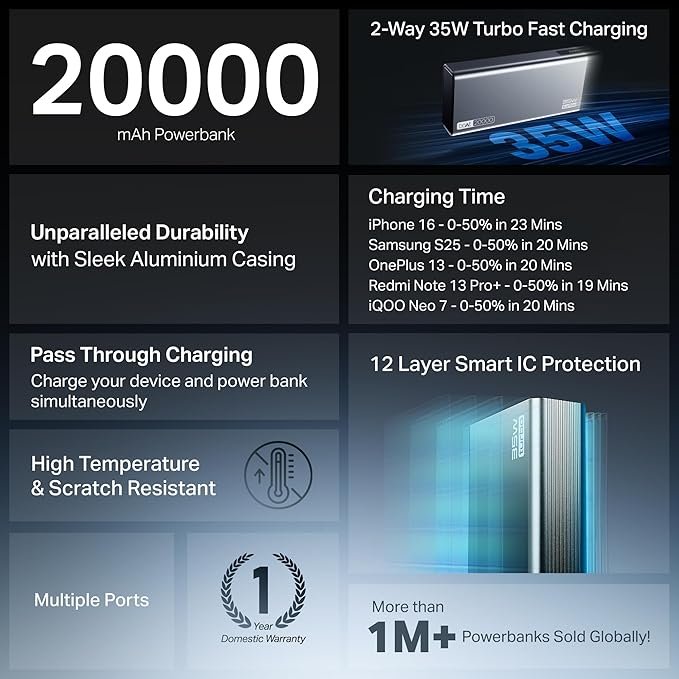 - 35W 2-Way Fast Charging Technology: Equipped with Quick Charge 3.0, Power Delivery, and Programmable Power Supply (PPS), the PB435 Turbo enables rapid and efficient charging for a wide range of devices.