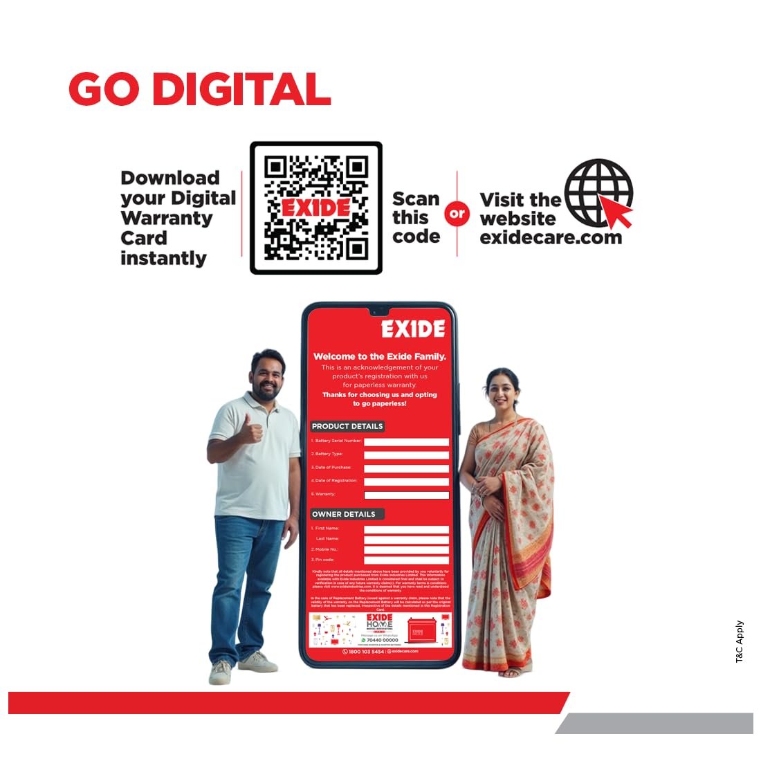 - 60-Month Warranty Coverage – Comes with a total of 60 months warranty (36 months full replacement + 24 months pro-rata). Supports paperless warranty registration through ExideCare.