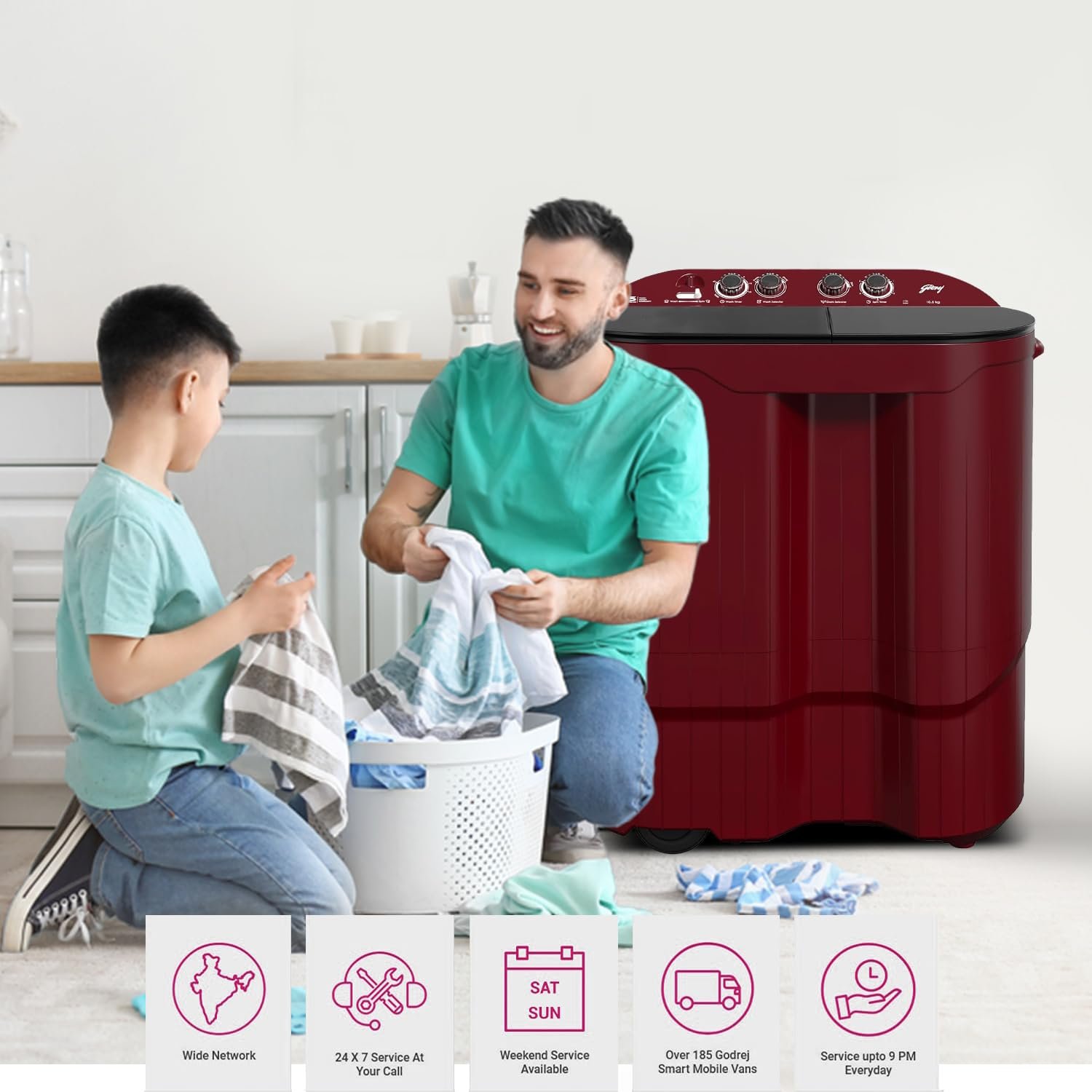 - Pulsator type & Body material – Tri Roto Scrub pulsator & Rust Proof Poly-Propylene Body material