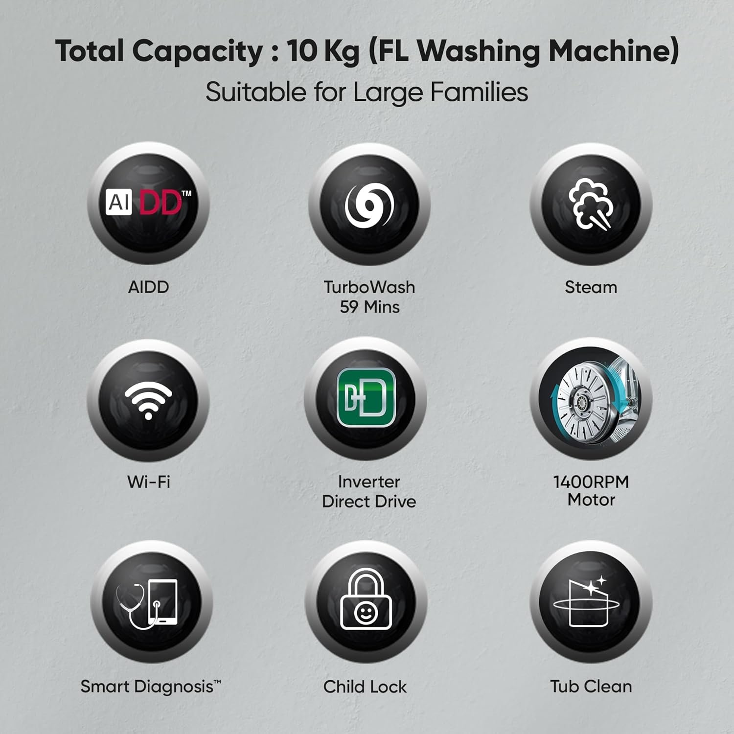 - Fully-automatic front load washing machine with Hygiene Steam & AI direct-drive technology: Best Wash Quality, Energy and Water efficient