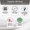 - Capacity: 185 Liters: Suitable for Suitable for families with 2 to 3 members / Bachelors / Couples | Freezer Capacity – 16 L; Fridge Capacity (Fresh food capacity) – 169 L
