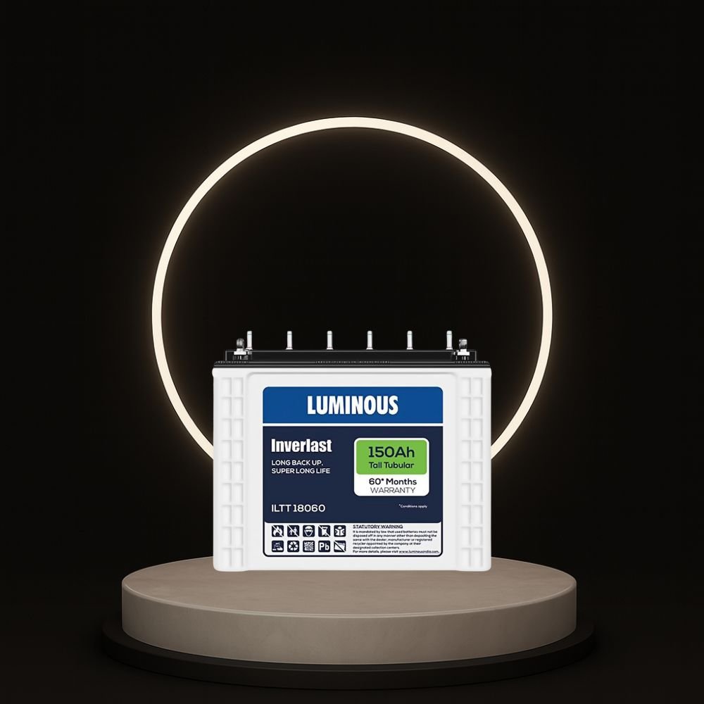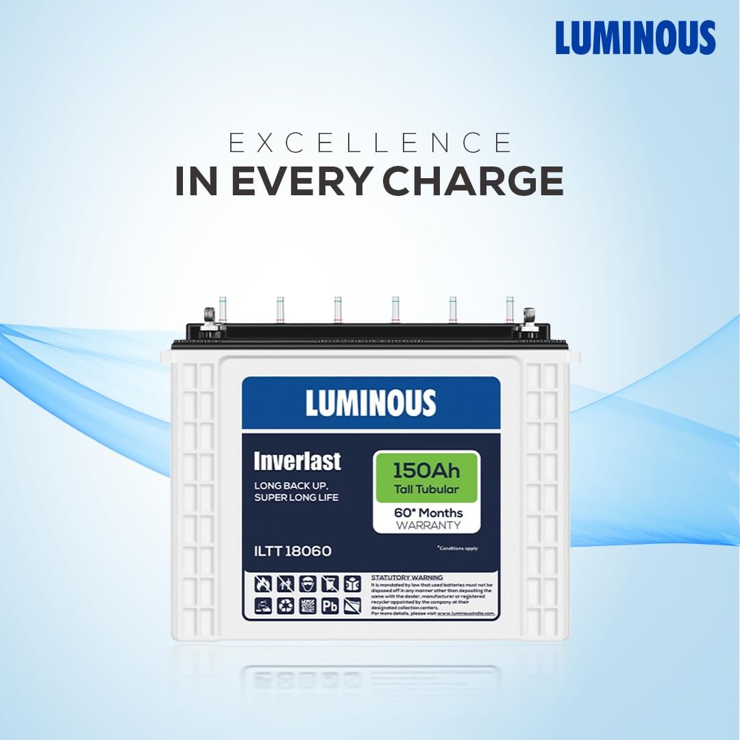 - 150 Ah capacity, 12 V: Tall tubular plate battery suitable for home, office, and shop use.