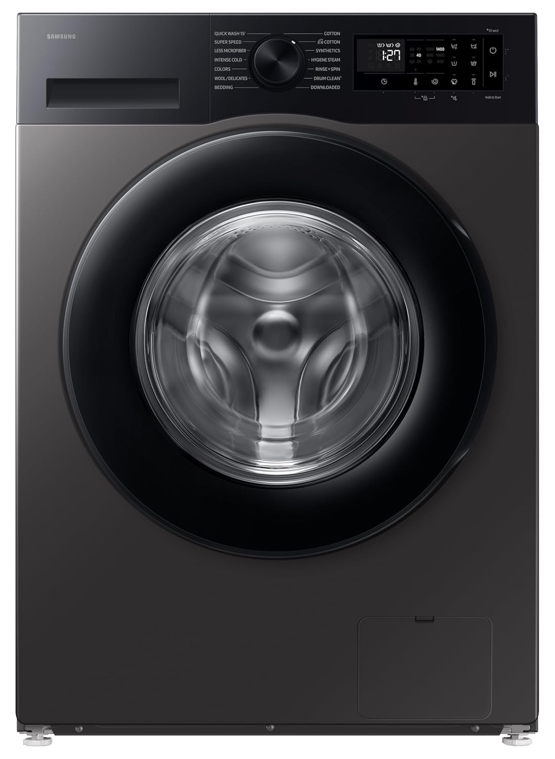 - 14 Wash Programs – Super Speed- Wash in just 39 minutes | Quick Wash 15′ | Bedding – Wash heavy loads | Cotton | Colours | Drum Clean+ Removes dirt and 99.9% of odor-causing bacteria | E Cotton | Hygiene Steam – Removes 99.9% germs and allergens | Intense Cold | Less Microfiber – Reduces the amount of microfiber released into the drain water (up to 54%) | Rinse + Spin | Synthetics | Wool/Delicates