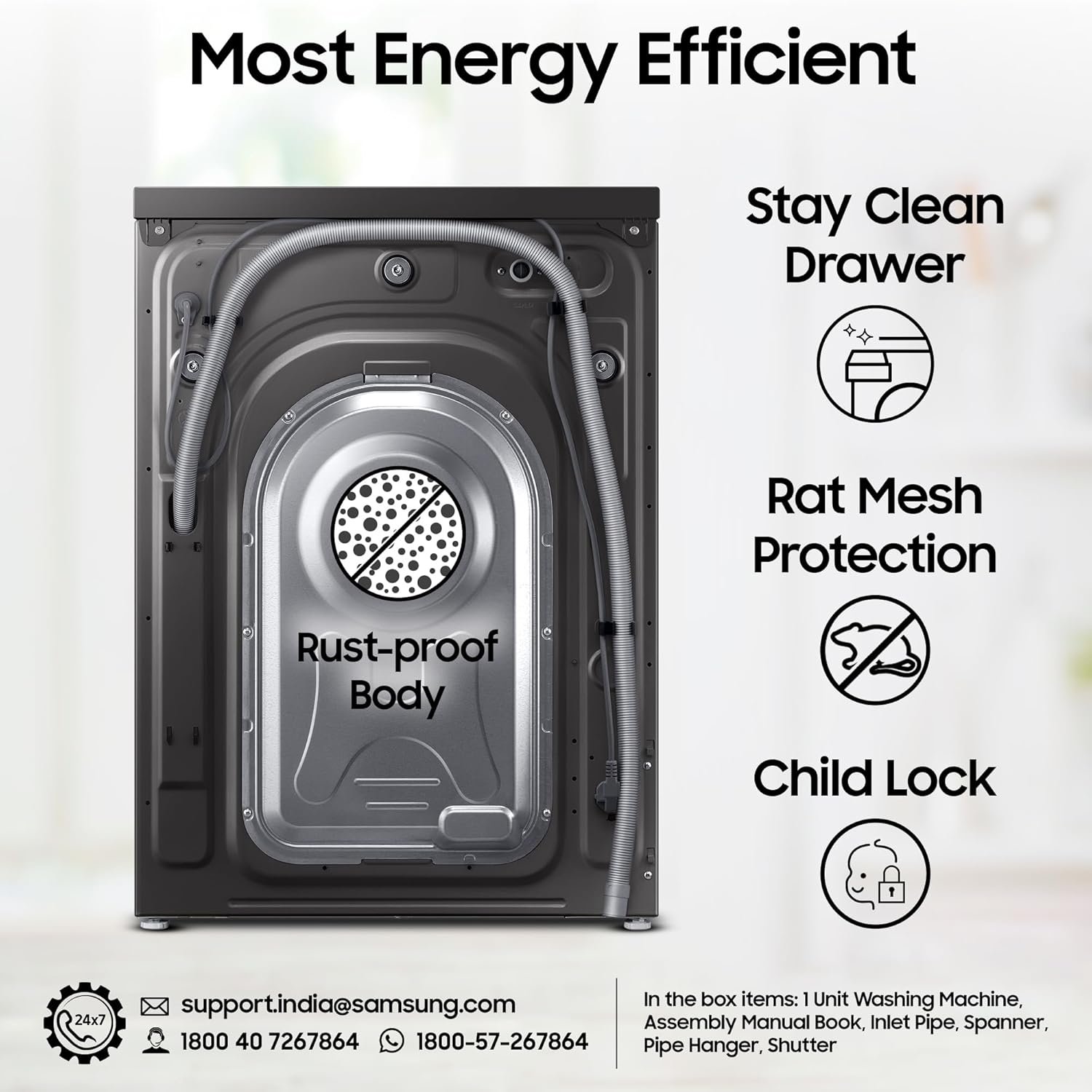 - Capacity 9 kg: Suitable for large families | SpaceMax – More Space inside | Water Pressure: (50-800 KPa) | Water Consumption : Refer to BEE label