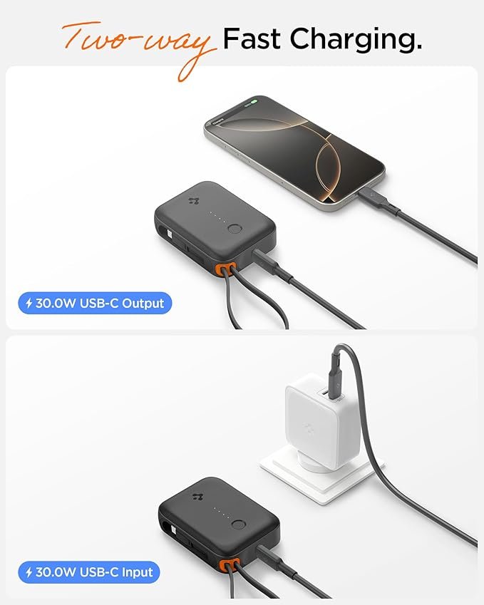- Built-in USB-C Cable: No need to carry extra cables – with a built-in cable, you can charge on-the-go without the hassle