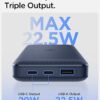 - 22.5W Fast Charging: Supports up to 22.5W fast charging via QC3.0 USB-A port and up to 20W output and input charging via 2 X PD3.0 USB-C ports(*Multi-Output: 15W Max). Compatible with all mobile divces, tablets, laptops and more