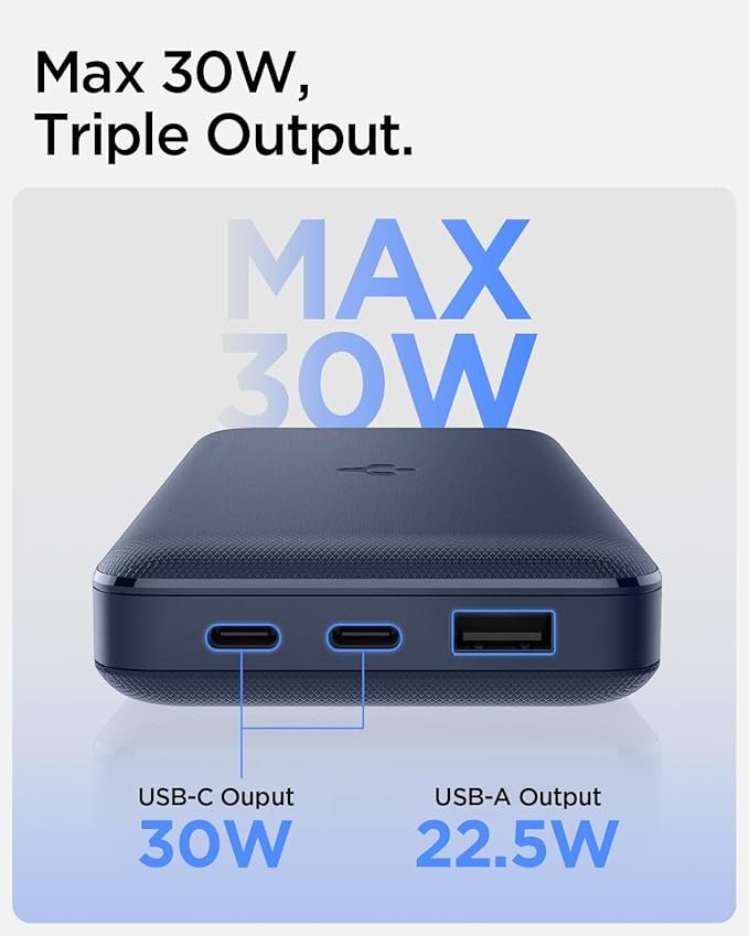 - 22.5W Fast Charging: Supports up to 22.5W fast charging via QC3.0 USB-A port and up to 20W output and input charging via 2 X PD3.0 USB-C ports(*Multi-Output: 15W Max). Compatible with all mobile divces, tablets, laptops and more