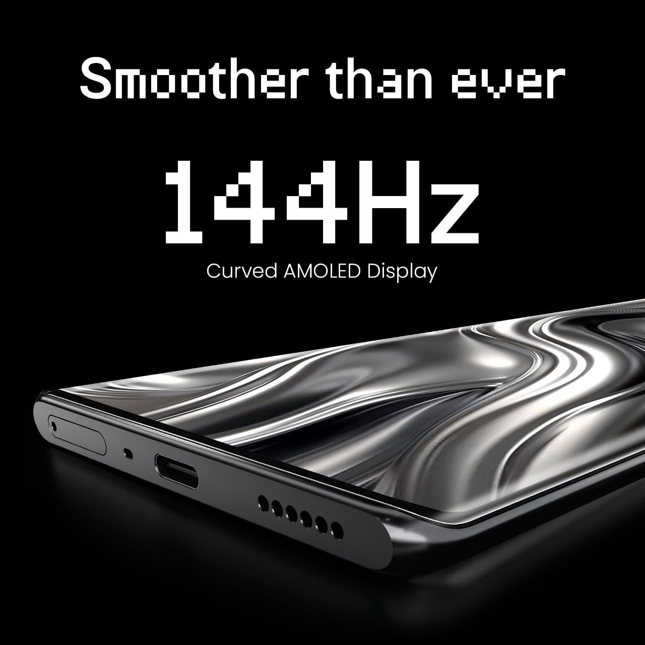 - Display (144Hz Curved AMOLED Display) : A screen that melts into the edges. Ultra-responsive. Flicker-free. Made to move with you, whether you’re scrolling, gaming, or simply vibing.