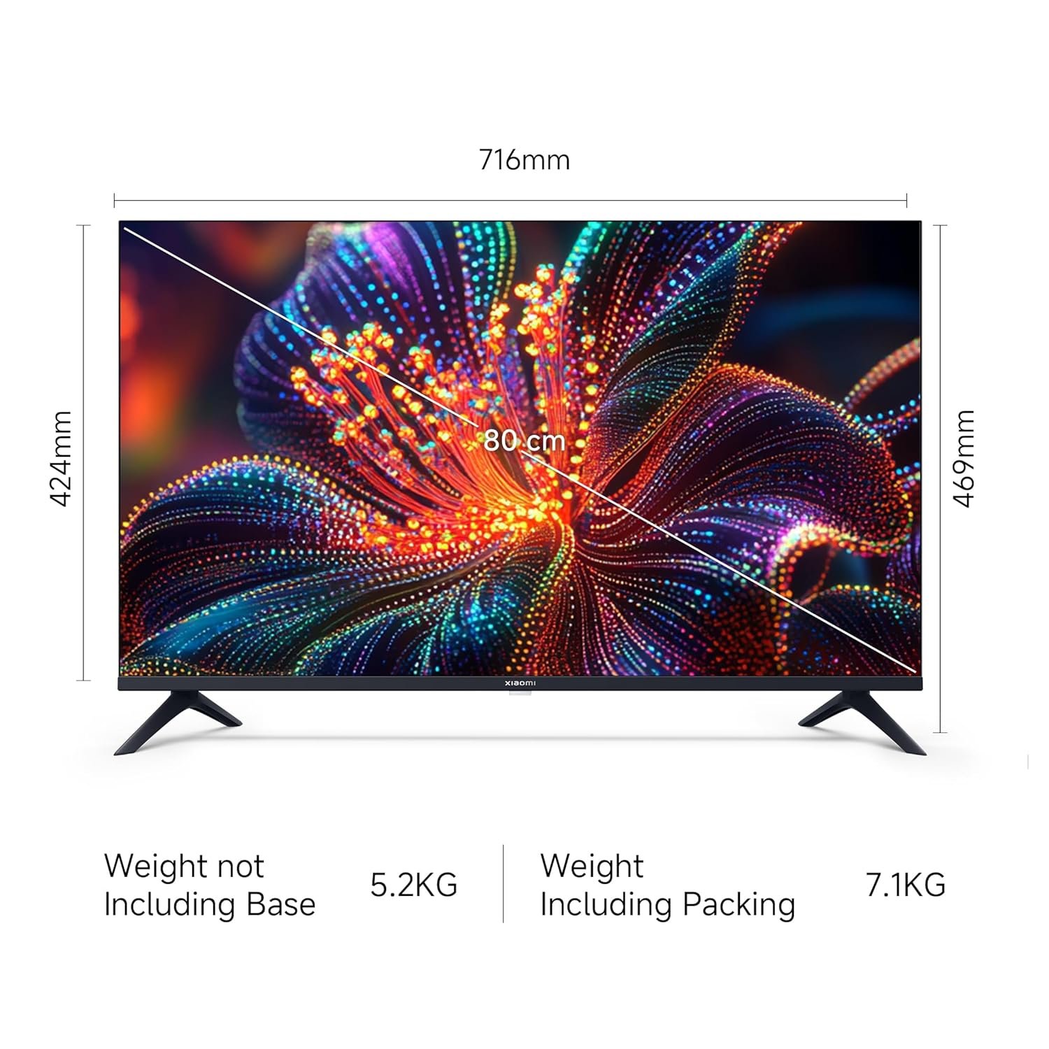 - Smart TV Features : Android 14 OS |Google TV | In-Built WiFi | Screen Mirroring | 1 GB RAM | 8 GB ROM | Supported Apps: Netflix, Prime Video, YouTube etc.| Voice Control ,Google Assistant Operation